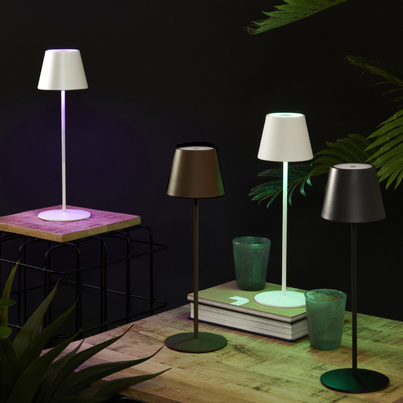 La marca Bizzotto es sinónimo de calidad y nuestra LÁMPARA MESA LED MULTICOLOR ETNA BLANCO H38 no es una excepción. El material utilizado en su construcción es el metal, asegurando una larga vida útil.