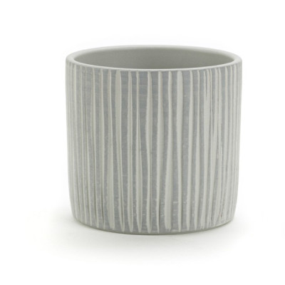 HOJAS DE TELA DE POLIÚSTER, TRONCO DE BAMBÚ, METAL, MACETA DE PLÁSTICO, CONTENIDO DE MACETA DE HORMIGÓN.