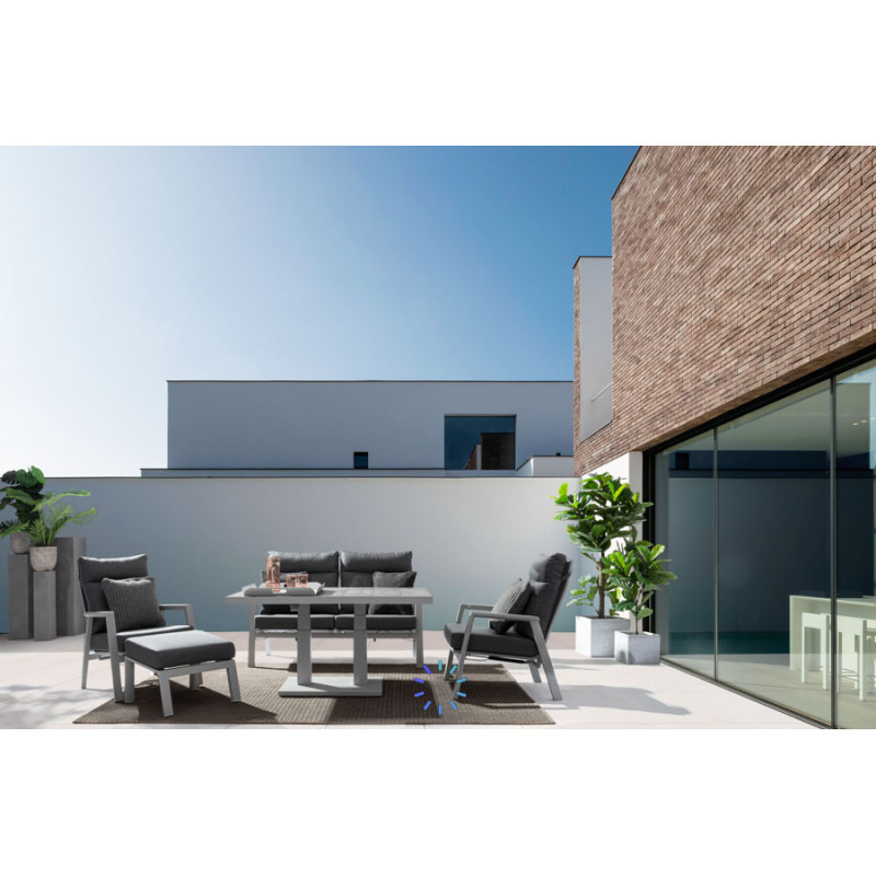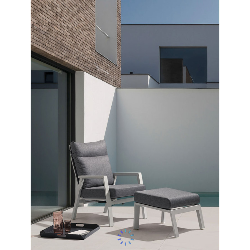 ESTRUCTURA DE ALUMINIO CON REVESTIMIENTO EN POLVO (POLISTER), COJÖN DESENFUNDABLE EN TEJIDO OLEFIN (100% POLIPROPILENO).